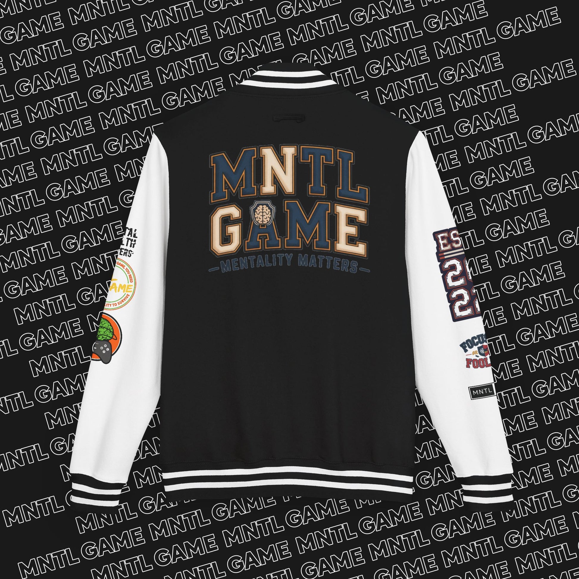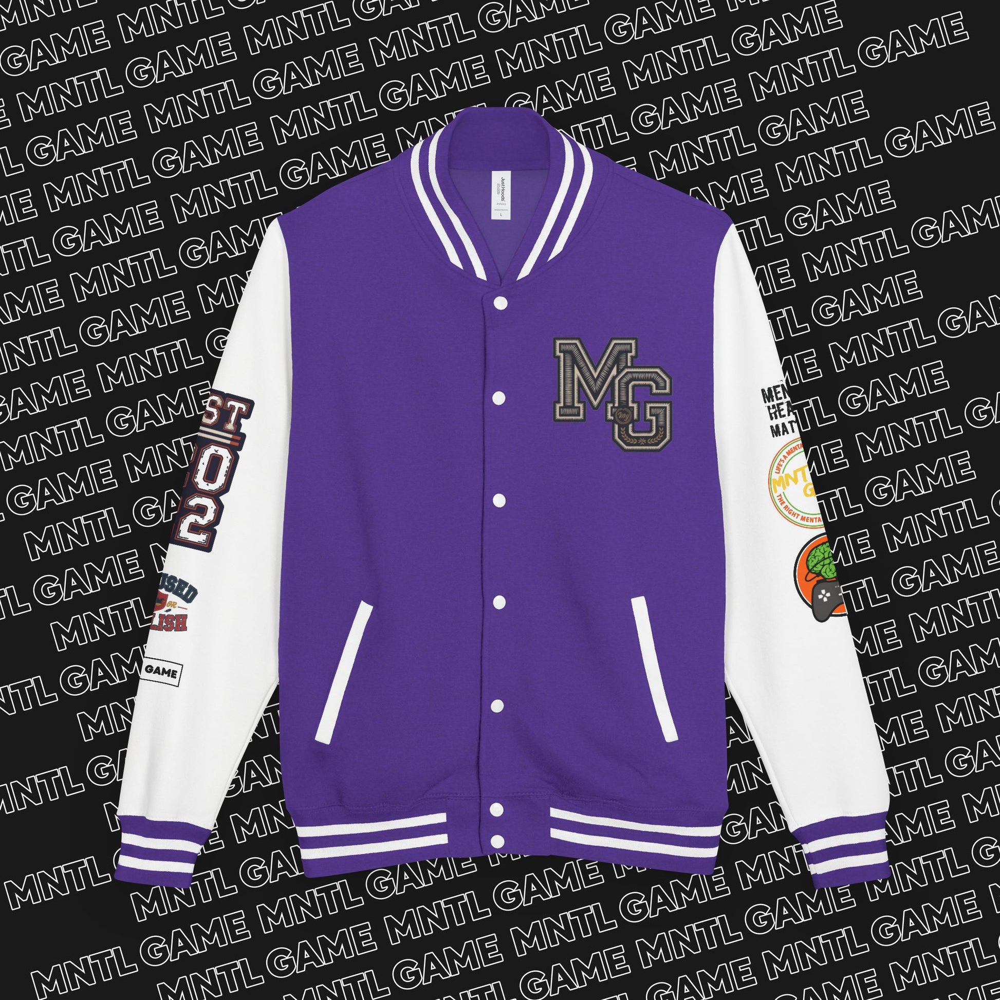 This MNTL Game Letterman Jacket is a perfect blend of style and meaning, nodding to mental health matters and the concept of "NGE" New Growth Era — evolution, healing, and transformation. It exudes a sense of empowerment and positivity, making it a great addition to anyone's wardrobe. Ideal for those who value mental well-being and personal growth. Perfect for wearing during mental health awareness events, personal development workshops, or casual outings.